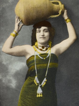 BEST BUY.. An Egyptian Woman Holding Aloft a Large Pottery Jar Photographic Poster Print, 12x16